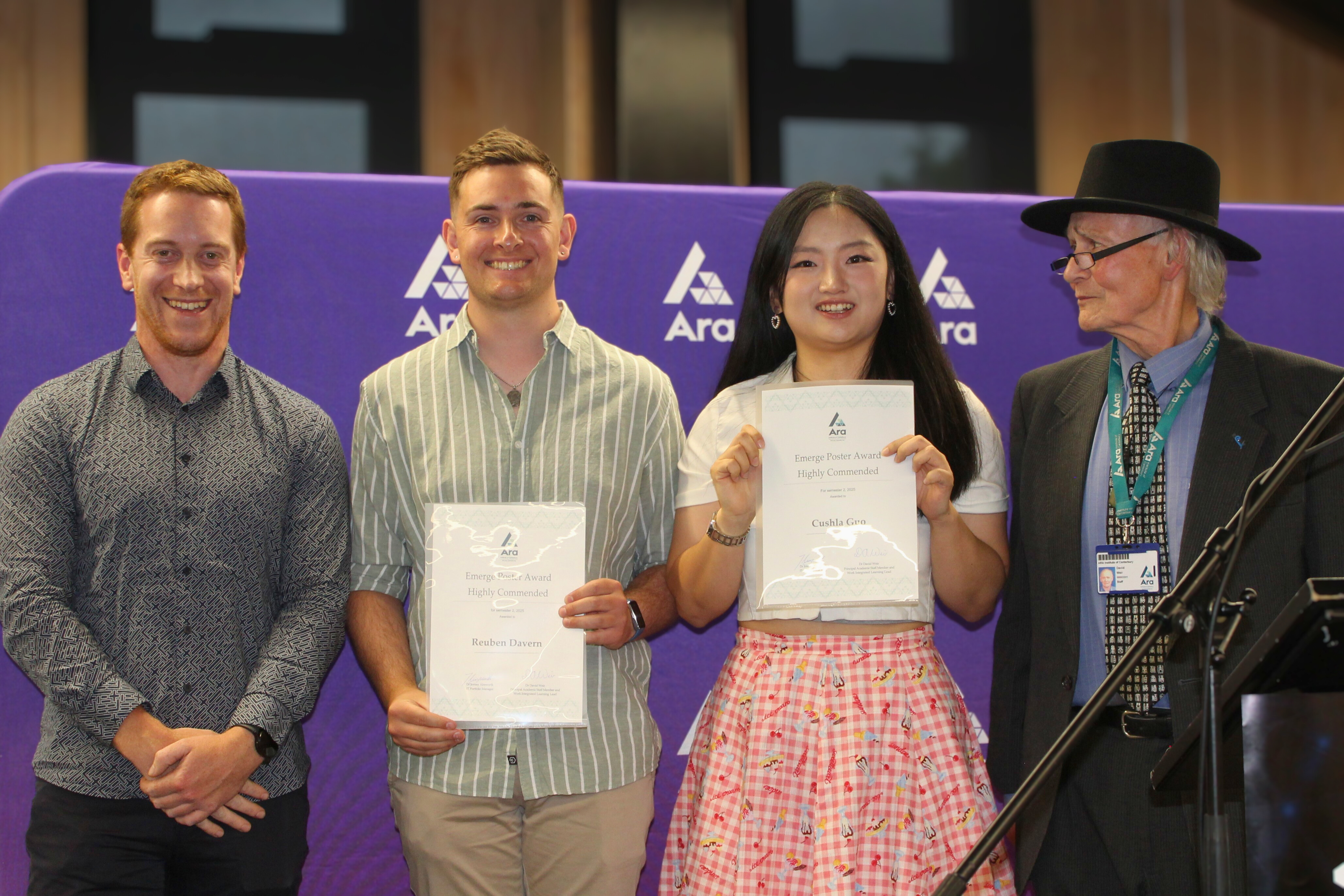 For several graduates, their Emerge projects had already led to ongoing work or interviews, demonstrating the value of Ara's work-integrated learning approach and the strong engagement of local employers. Industry representatives were in attendance, talking with students about their project outcomes, career aspirations and the skills they've developed during their studies.