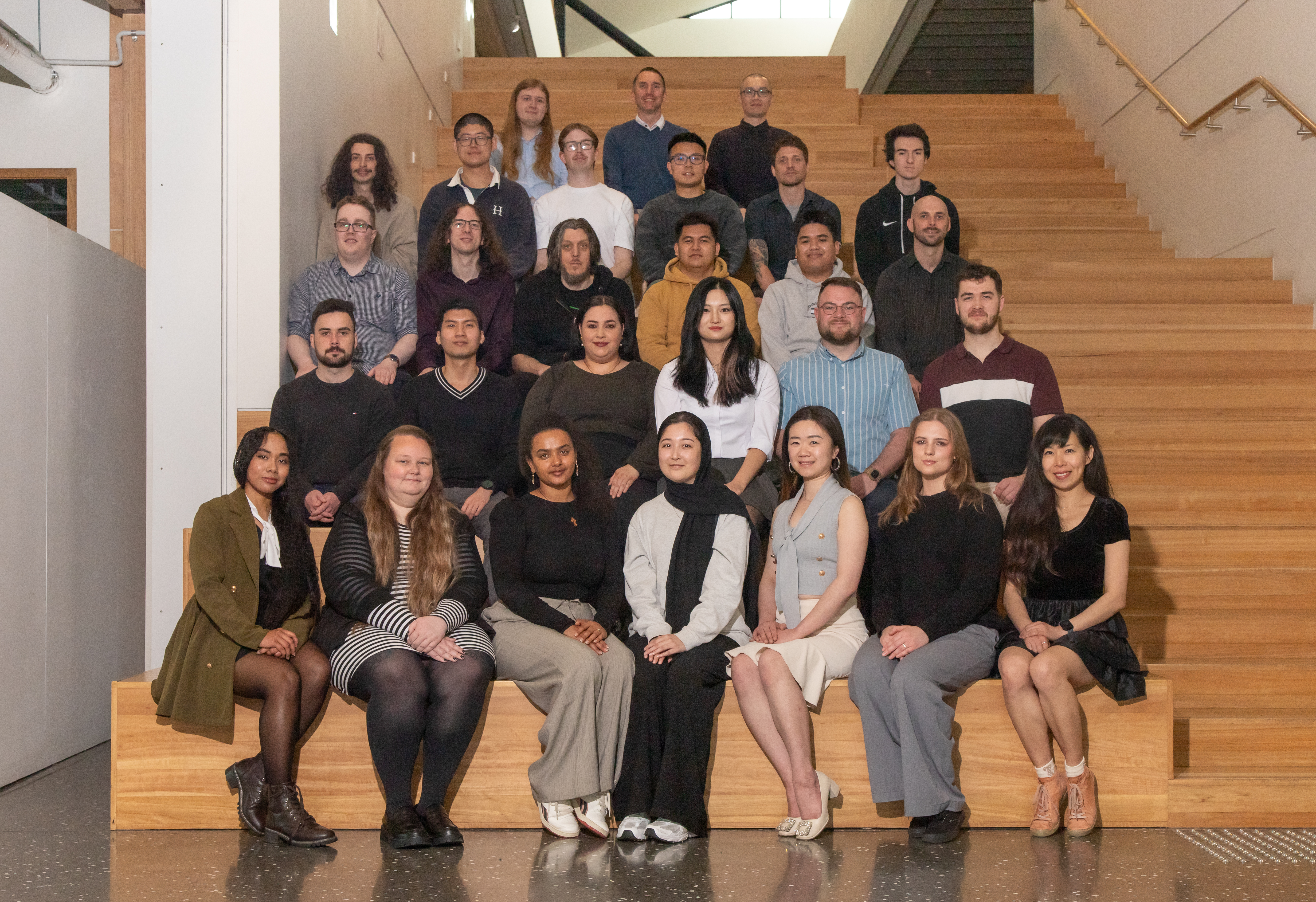 L - R: Front row: Arsenie Sarmiento, Jacqui Webster, Yeshi Birhanie, Maryam Mohebi, Iris Guo, Maria Lisov, Sophia Liang. Second row: Christopher Ireland, Clarence De Jesus, Iolanthe Warburton, Cushla Guo, Terrence Beach, James Cross. Third row: Ollie McColl, Blake Davis, Craig Harris, Jan Ben Eric Escleto, Lex Suarez, David Watts. Fourth row: Jacob McLure, James Elliott, Flynn Stevens, Huy Nguyen, Graeme White, Josh Merkin. Fifth row: Daniel Templer, Steven Snelling, Adrian Lim.